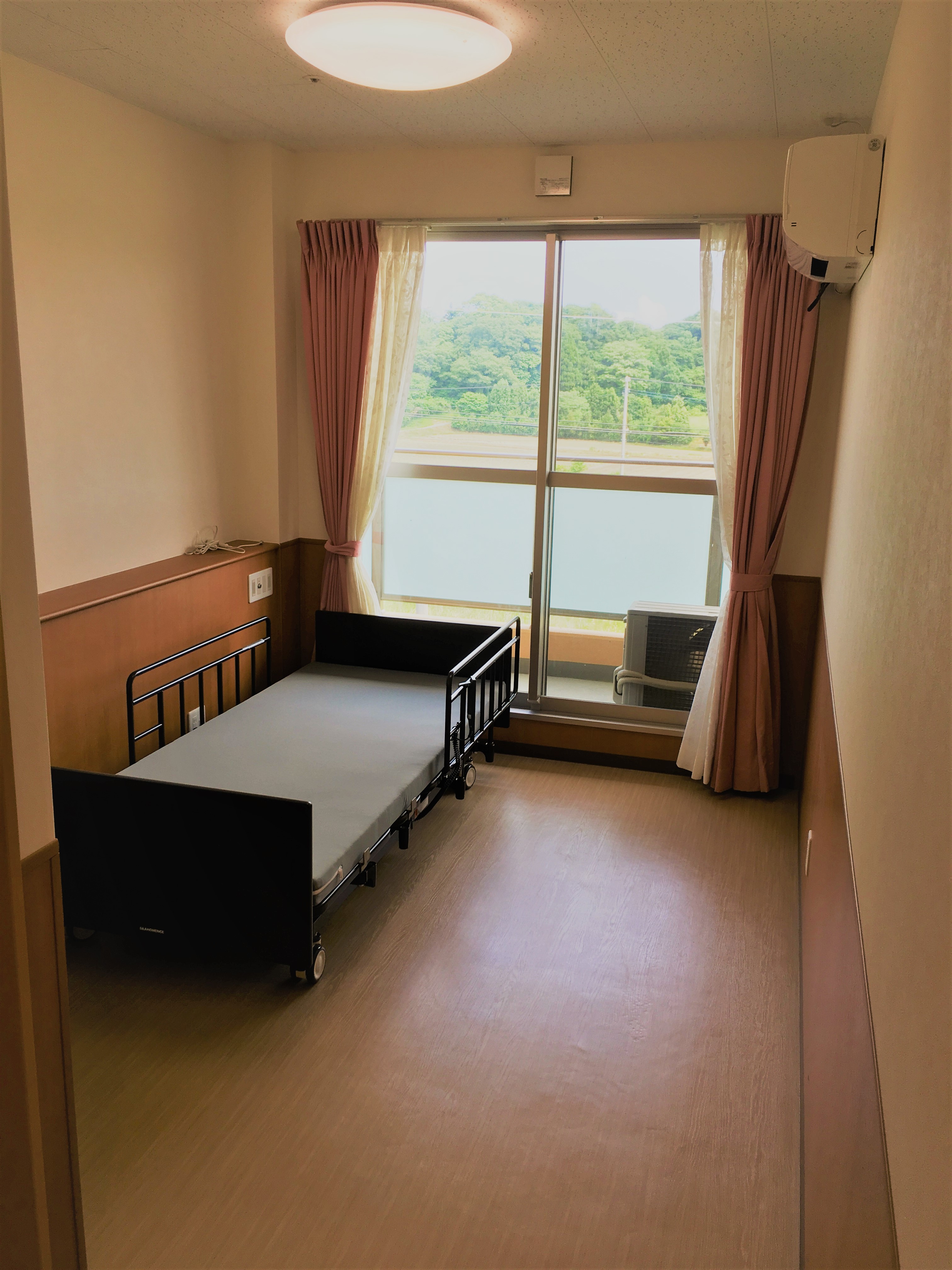 各居室にベッド・トイレ・洗面台・エアコン・床頭台を完備しております。